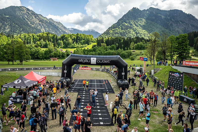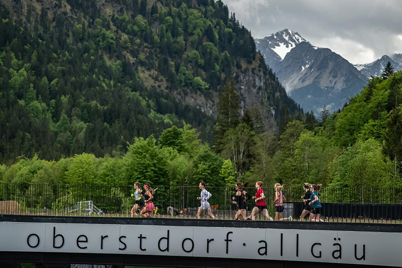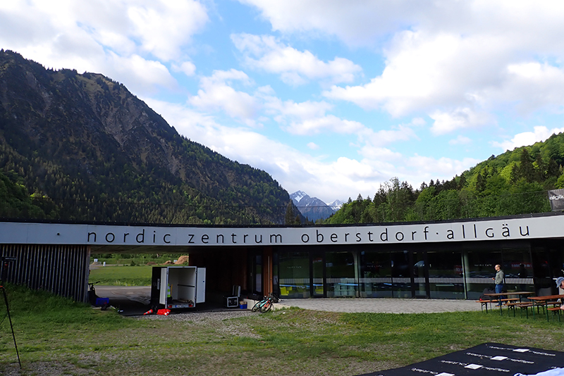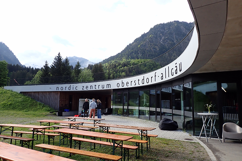 Veranstaltungsgelände ist das Nordic Zentrum in Oberstdorf. Eine Anlage, die sich auch hervorragend für Laufveranstaltungen eignet und ein prima Ambiente bietet. Der großzügige Parkplatz des Nordic Zentrums steht heute allen Teilnehmern kostenlos zur Verfügung. Im Winter kann man im und ums Nordic Zentrum „auf den Spuren der Weltmeister“, wie es in der Beschreibung der Anlage heißt, die Original-Loipen der Nordischen Ski-Weltmeisterschaft von 2021 testen. Dafür werden Loipen von unterschiedlicher Länge und auch unterschiedlichem Schwierigkeitsgrad gespurt. Schnee sehen wir heute nur auf den höheren Bergen, die uns umgeben, auch wenn es morgens um neun Uhr mit gut sechs Grad noch etwas frisch ist. Zum Laufen sind diese Temperaturen aber angenehm.