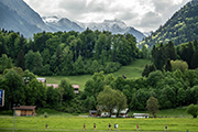 Danach mache ich mich wieder auf den Rückweg zum Auto, um mich langsam, aber sicher für den Lauf fertig zu machen. Ich entscheide mich für ein langes Laufunterhemd, Laufshirt und eine ärmellose Regenjacke. Es hängen tatsächlich ein paar dunkle Wolken über dem Allgäu. Ob es trocken bleibt, kann nicht einmal Wettergott Axel gesichert beantworten. Da hat wohl einer seine Hausaufgaben nicht gemacht.