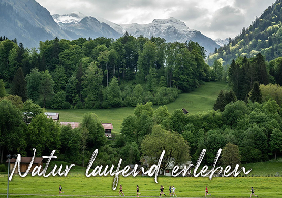 Es geht durch Wälder, auf freiem Feld haben wir einen tollen Blick auf die Alpen. Wir laufen an Kuh- und Ziegenweiden vorbei und auch die Sonne lässt sich ab und zu sehen. Mir geht es mit jedem Schritt besser. Es ist ein Traum hier zu laufen, nur dass ich meine Kamera im Auto liegen ließ, trübt etwas meine Freude. Egal, ich laufe vor mich hin und genieße einfach, dass ich hier laufen darf. Florian und ich erreichen gemeinsam den Wendepunkt und werden von zwei netten Helferinnen angefeuert, die Obacht geben, damit wirklich jeder um die Pylone läuft, die den Wendepunkt markiert. Gut einen Kilometer geht es nun auf selbiger Strecke zurück und ich kann ganz gut durchzählen, wie viele Mitläufer noch hinter uns sind. Die fünf Finger meiner linken Hand reichen beim Zählen aus. Es sind exakt fünf Läufer, also alles gut und ich brauche mir über den Kampf um die rote Laterne jetzt schon keine Gedanken mehr machen.