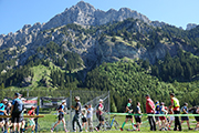 Unterhalb der markanten Gipfel der Rote Flüh, Kellenspitze und Gimpel im Nordosten und der gegenüberliegenden Krinnenspitze im Südwesten liegt in Nesselwängle, unser Start- und Zielgelände in einer wunderschönen, exponierten Lage. Nicht umsonst genießt das Tannheimer Tal den Ruf als schönstes Hochtal Europas. Organisiert wird der SEEN-LAUF | TRAIL-RUN Tannheimer Tal vom Sportverein Nesselwängle, dem Skiclub Tannheimer Tal und dem FC Tannheim. Die Abholung der Startnummern geht fix von statten. Auf Grund der riesigen Nachfrage wurden nochmals 300 Startplätze, sogar mit Medaille für Nachmelder, zur Verfügung gestellt.