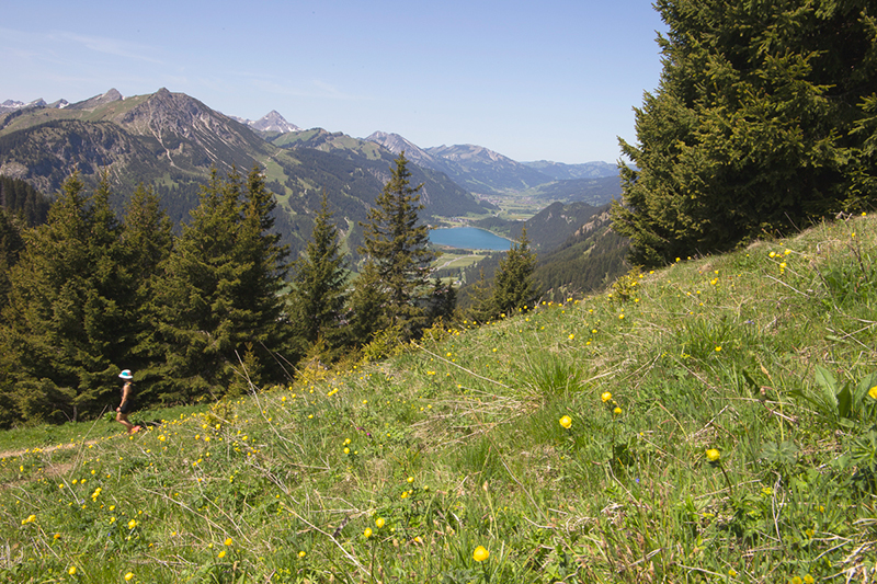 Den SEEN-LAUF mit den klassischen Hauptläufen über zehn und 23 Kilometer gibt es schon länger, dazu wurde auch immer wieder eine Trailstrecke angeboten. Vor zwei Jahren ist die Event-Location von Tannheim nach Nesselwängle umgezogen, seitdem werden mit dem „3 Hütten Trail S“ (12,5 km, 700 Höhenmeter) und den „6 Hütten Trail L“ (25,7 km, 1.500 Höhenmeter) sogar zwei Trailrunning-Strecken angeboten. Ich nützte dieses interessant klingende Angebot, um auf der 25 km langen Distanz endlich auch einmal das Tannheimer Tal laufend kennenzulernen.