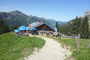 Mäßig steigend führt unser Weg weiter bis zur Tannheimer Hütte, der zweiten Hütte auf unserem 6 Hütten-Trail. Der neue Holzbau wurde erst im Sommer 2024 wieder eröffnet, nachdem die alte Unterkunft die Behördenauflagen nicht mehr erfüllen konnte und seit 2015 geschlossen war. Von der Sonnenterrasse könnte man bereits ein erstes herrliches Panorama genießen.