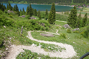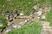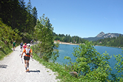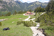 Mir fällt auf, dass es hier viele kleine Wasserfälle und Wasserläufe gibt, woraus man sich das kühle Nass über den Kopf schöpfen kann. Vor zwei Wochen im naheliegenden Nesselwang, war es noch so trocken, dass dies ganz ausgeschlossen war.