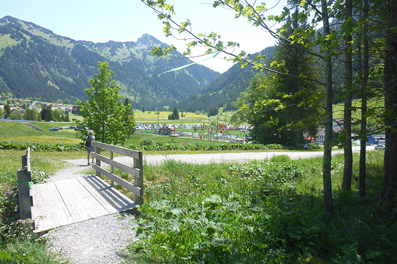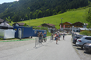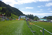 Vor dieser Richtung kommend liegt wenig später das Startgelände beim Sportcenter Nesselwängle direkt am Ortseingang. Auf über einen Kilometer Länge hat man davor einen parallel zur Straße verlaufenden Feldweg an einer Wiese als Parkplatz umfunktioniert, wohin alle ankommenden Fahrzeuge eingewiesen werden. So bleibt der Tag auch weiterhin für mich entspannt.