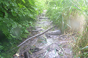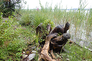 Je länger ich unterwegs bin und je tiefer ich in dieses Abenteuer hineingelange, umso mehr Spaß macht es mir. Klar es regnet, fast ununterbrochen, aber der See und vor allem unser Trail am Ufer entlang haben auch bei diesem Wetter wunderschöne Seiten und vor allem Überraschungen.
