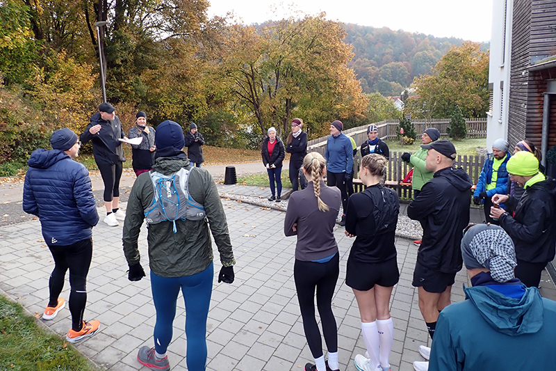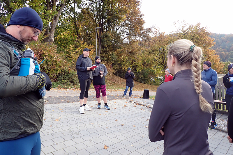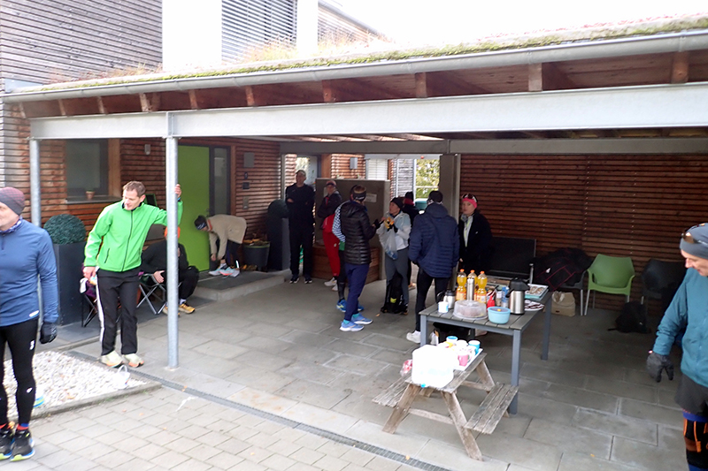 Von den 45 gemeldeten Läufern sind nahezu alle anwesend. Es sind nur wenige Debütanten dabei, so dass Andreas kein Problem hat, mich zu identifizieren. Wir begrüßen uns, stellen uns kurz vor und es passt auf Anhieb. Überhaupt ist die ganze Truppe sehr sympathisch. Die Stimmung ist ausgelassen, man kennt sich. Bei mir beschränken sich die bekannten Gesichter (noch) auf Udo und Roland. Da es sich um einen Spendenlauf für den Verein krebskranker Kinder Ostbayern handelt, stecke ich noch schnell einen Schein in die Spendenbox, bevor ich mir einen heißen Kaffee einschenke. Am Ende sollen es übrigens 800 Euro sein, die so zusammengekommen sind. Eine ordentliche Summe, wie ich finde.