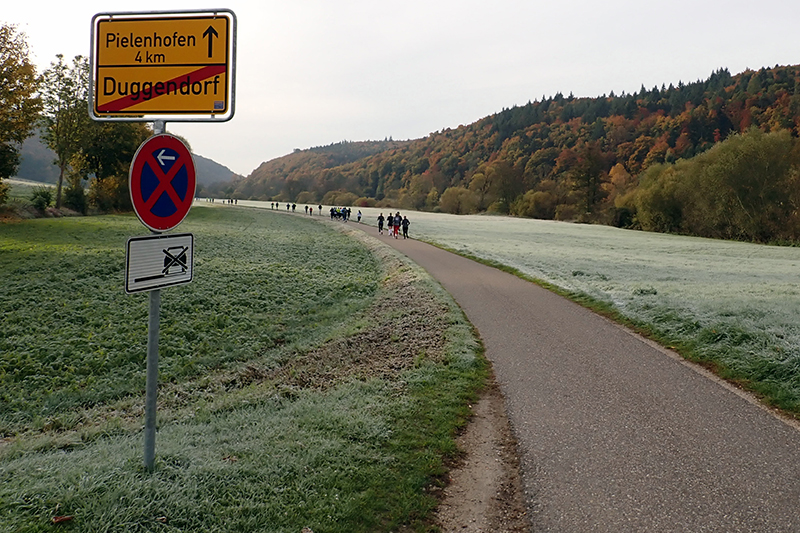 Kurz vor acht Uhr parke ich am Sportplatz in Duggendorf ein. Übrigens bin ich wirklich in Duggendorf und nicht in Deggendorf. Bei Nachfragen, wo ich denn am Wochenende laufe, wurde sicherheitshalber immer nachgefragt: „Meinst Du nicht Deggendorf?“ Nein, ich meine Duggendorf, selbst meinem Navi musste ich das erklären. Gut, Duggendorf ist ein Dorf mit etwas über 1.500 Einwohnern und liegt ca. 21 Kilometer nordwestlich von Regensburg in selbigem Landkreis. Urkundlich erwähnt wurde Duggendorf erstmals 1270, nachdem es bereits im Jahr 1000 als Tutindorf in Erscheinung trat. Es folgten die Schreibweisen Tukendorf, Tukkendorf und Tugkendorff bevor 1665 letztendlich die jetzige Schreibweise Duggendorf folgte.