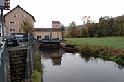 Es geht also los. Mit leicht steifgefroren Gliedern stürzen wir uns die ersten hundert Meter den Berg hinunter. Ich habe nur eine ¾-Hose an und ziemlich kalte Wadl. Aber was anderes blieb mir nicht, meine Wadl sind mit ein paar Stichen frisch genäht, eine lange Hose ist also nicht drin. Vorsicht müssen wir beim Überqueren der Staatsstraße erst mal nicht walten lassen. Das einzige Auto weit und breit hält angesichts der laufenden Meute freiwillig an. Kurz darauf überqueren wir auf der Brücke die Naab. Diese ist tatsächlich größer, als ich sie mir vorgestellt habe. Sie ist ein Nebenfluss der Donau und entsteht bei Weiden aus dem Zusammenfluss von Waldnaab und Haidenaab. Bei Regensburg fließt die Naab schließlich in die Donau. Ab nun laufen wir immer an der Naab entlang bis zu besagtem Wendepunkt. Was sich am Anfang etwas langweilig anhört, ist es am Ende aber gar nicht.