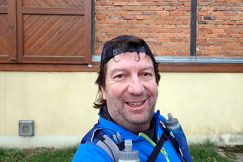 Auf dem Rückweg entdecke ich zwar nichts Neues, komme aber gut voran und kann das Laufen genießen. Immer wieder begegne ich Läufern, ob sie jedoch die 30 km, den Marathon oder den Ultra laufen, kann man am Tempo nicht unbedingt festmachen. Gitte Frenzel fällt mir dabei ganz besonders auf. Nicht nur der tolle Laufstil, sondern auch das enorme Tempo. Dabei wirkt sie mehr als locker und hat immer ein Lächeln auf den Lippen. Am Ende wird sie mit 3:32 Stunden im Ziel sein. Nur knapp eine halbe Stunde nachdem ich die zweite Runde in Angriff nehme. Aber bis dahin habe ich noch etwas vor mir. Kurz bevor ich die Brücke über die Naab erreiche, kommt mir Udo entgegen. Der Abstand ist also noch akzeptabel. Roland ist schon lange vorbei. Ich plage mich noch die letzten paar Meter zu Andreas' Carport hinauf und lasse mich erst mal auf einen Kuchen und einen Kaffee nieder. Ich habe mein erstes Ziel erreicht. Den Rest werde ich entspannt angehen lassen.
