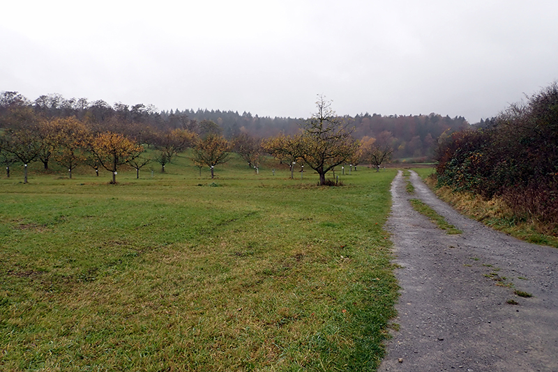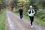 Danach geht es unter der Autobahn durch und gleich einen kleinen Anstieg hoch. Grund für Kati und mich gleich mal ins Gehen zu verfallen. Wir wollen uns ja schließlich noch unterhalten können und keuchend ist das nun mal nur unter erschwerten Bedingungen möglich. Es geht leider noch eine Zeitlang an der Autobahn entlang, was auf der ersten Runde noch annähernd ruhig möglich ist. Auf der zweiten Runde wird das schon anders aussehen. Aber irgendwie müssen wir ja schließlich in den schönen Laubwald bei Rutesheim und da ist es ja dann auch ruhig genug. Wobei Ruhe ja relativ ist. Ich habe schließlich die Kati neben mir. Das Erlebte der letzten drei Monate - also, seit wir uns das letzte Mal gesehen haben - muss raus und Kati hat ja nur eine Runde Zeit. Da heißt es reden ohne Punkt und ohne Komma. Ab und zu grätsche ich dazwischen und gebe auch etwas aus meinem Leben zum Besten. Aber so mag ich die Kati und ich kenn das eigentlich auch gar nicht anders. Zudem muss ich dann nicht so viel reden und kann mir die Luft zum Laufen aufheben.