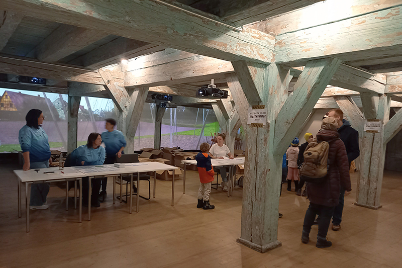Start- und Ziel befinden sich vor und in der Erlebniswelt HopfenBierGut. Einem Museum rund um die Hopfen- und Bierkultur im fränkischen Seenland. Im ehemaligen Kornhaus darf der Hügelland Trailrun fast die gesamte Location nutzen. Mein erster Weg führt in den zweiten Stock, wo wir in einer imposanten Innenkonstruktion aus uralten Balken von 17 – 20 Uhr unsere Startunterlagen empfangen können. Wow, wirklich spektakulär und wunderschön. Der Fachwerkbau wurde 1457 errichtet und von 1897 bis 1984 als Hopfenlager genutzt. Nach einer aufwendigen Renovierung wurde auf 1200 qm die Welt des Hopfens und des Bieres erlebbar gemacht. Hier oben gibt es alte Gerätschaften und alles, was mit der Gewinnung des Hopfens zu tun hat, zu bewundern.