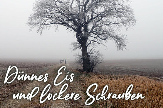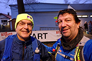 Jürgen und ich haben die Anmeldung schnell abgeschlossen, verpacken unsere „Stempelkarte“ schweißsicher und begeben uns nach draußen. Es ist heute etwas frisch. Die Temperatur ist knapp unter dem Gefrierpunkt, fühlt sich aber ganz angenehm an. Jürgen hatte mich am Tag zuvor noch gefragt, ob normale Trailer reichen oder ob es Spikes braucht. Von den Spikes riet ich ihm ab, da ja üblicherweise auch längere Etappen auf Asphalt dabei sind. Dass sich das für uns heute noch zum Running Gag entwickeln würde, war mir dabei noch nicht bewusst. Das GPS-Signal meiner Uhr ziert sich heute etwas, möglicherweise ist es ihr noch zu früh, gibt aber schließlich brummend das Startsignal. Jürgen und ich traben los.