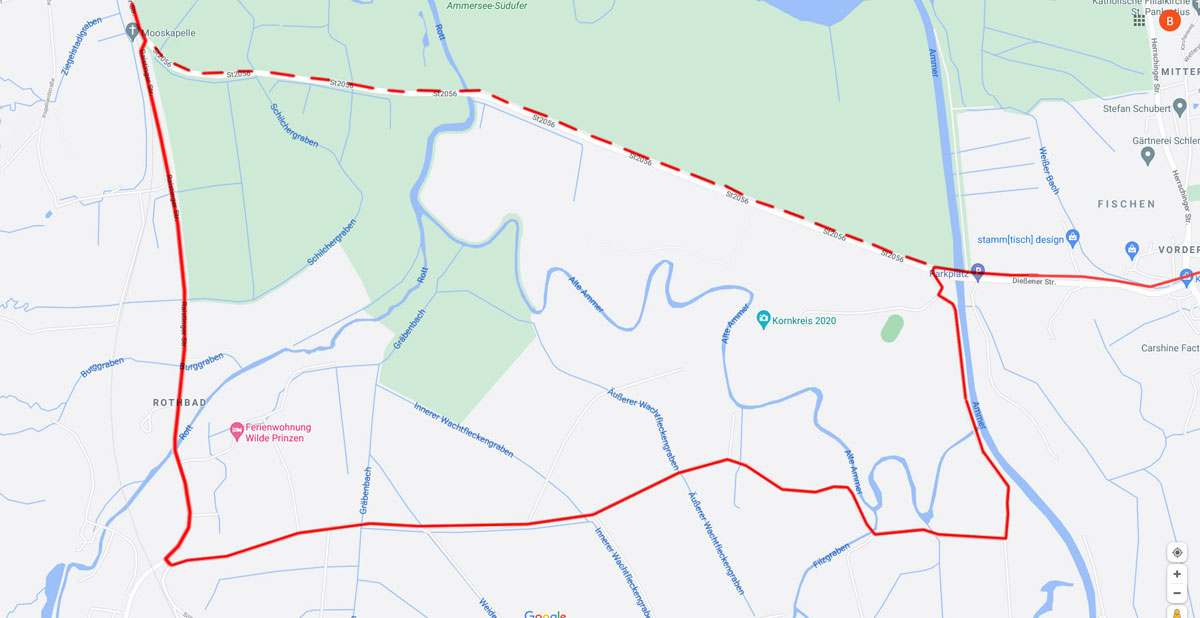 Start/ Ziel: Parkplatz Restaurant Fischer, Landsberger Str. 80, 82266 Inning am Ammersee / Ortsteil Stegen