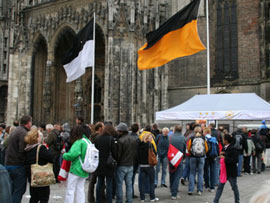 Menschen rund ums Stadion. |