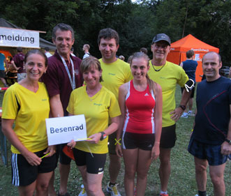 | Zum 4. Mal wurde der Augsburger Nachtlauf veranstaltet. Zwei Runden á 2,5 km waren um den, mit 300 Fackeln beleuchteten Kuhsee, zu absolvieren. Pünktlich mit der Dunkelheit wurde um 21.30 Uhr gestartet. Greppi legte sich mächtig ins Zeug und war schnellster TTler mit 23 min. Auch die Mädels waren gut drauf und kamen kurz dahinter ins Ziel. Jessi gab alles, aber Charly strecke noch seine Nase vor ihr ins Ziel. Die letzten wurden von Besenradler Hans sicher ins Ziel begleitet. |