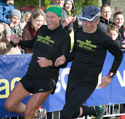 | Mit einem Schritt Vorsprung gewann Geoffrey Mutai den 39. Berlin Marathon in Weltjahres-Bestzeit von 2:04:15. Fast 41.000 aus 125 Nationen wollten beim Lauffest in der Hauptstadt, bei hervorragenden Wetterbedingungen dabei sein. Für Team TOMJ konnten Hans (3:05), Gerhard (3:25) und Margot (4:27) ganz starke Zeiten erzielen. Dauerbrenner Magic hat das Dutzend als Pacemaker in Berlin voll, punktgenau führte er seine Leute bei seinem 85. Einsatz auf der Langstrecke ins Ziel. |